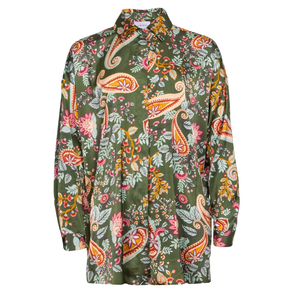 Liberté, Bluser og skjorter , Dame, Grøn, M, Polyester, Rummelig Langærmet Skjorte med Paisley Mønster