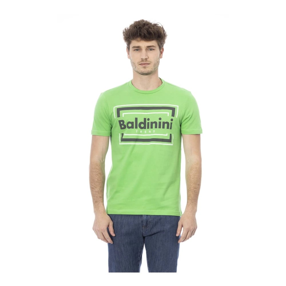Baldinini, Toppe , Herre, Grøn, XS, Bomuld, Trend T-shirt med Logo Mønster