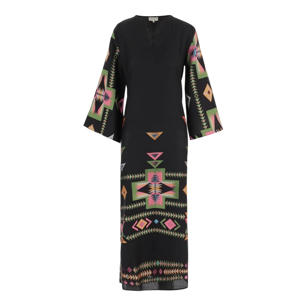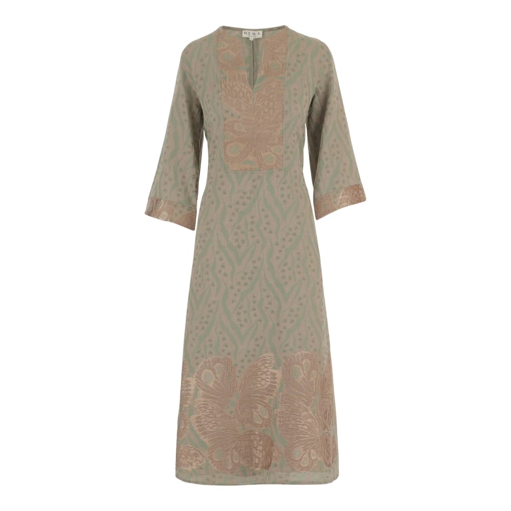 NEMA, Kjoler , Dame, Flerfarvet, L, Bomuld, Lang Mønstret Kjole