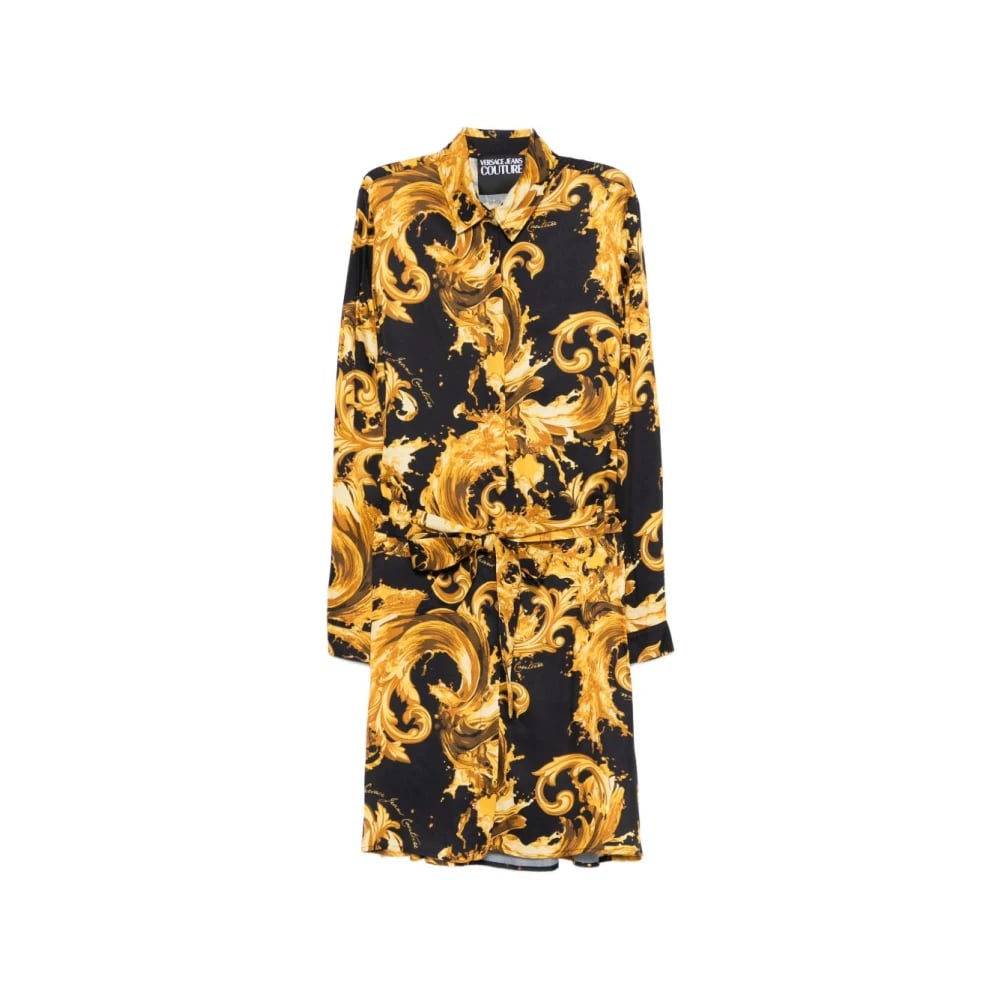 Versace Jeans Couture, Kjoler , Dame, Flerfarvet, XS, Bomuld, Kort mønstret kjole med logo