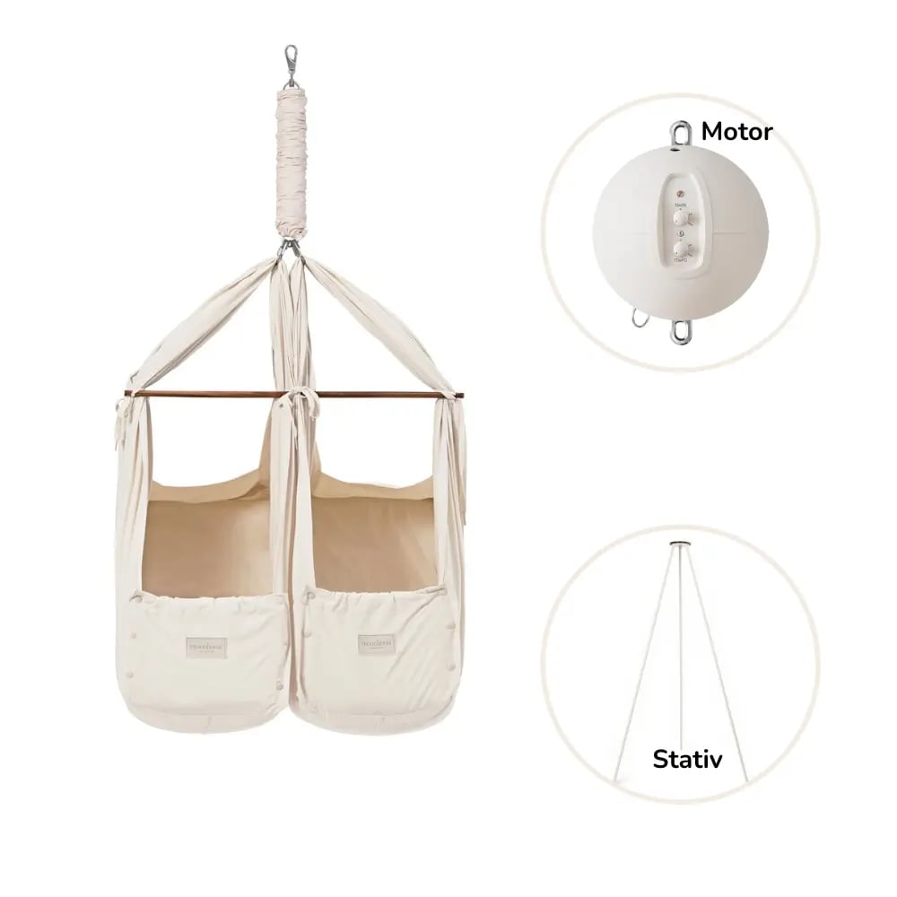 Moonboon Tvillingeslyngevugge inkl. stativ og motor - Natur