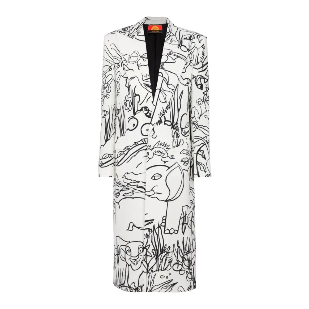 Balmain, Frakker , Herre, Hvid, L, Uld, Disney x : The Lion King - Lang krøllet trykt børnefrakke