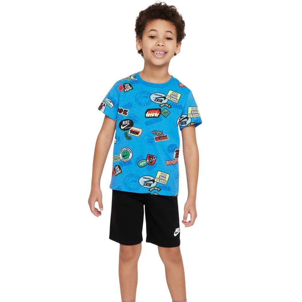 Nike-sæt med T-shirt og shorts med grafik til mindre børn - blå