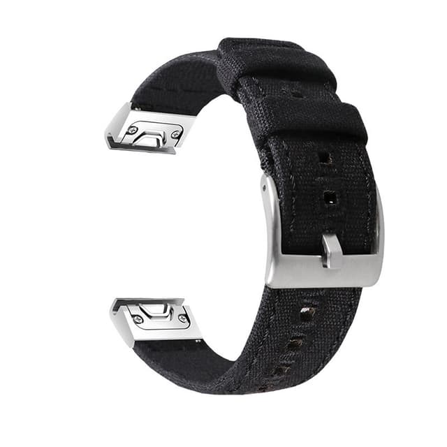 Højkvalitets vævet lærredsrem til Garmin ur Sort M