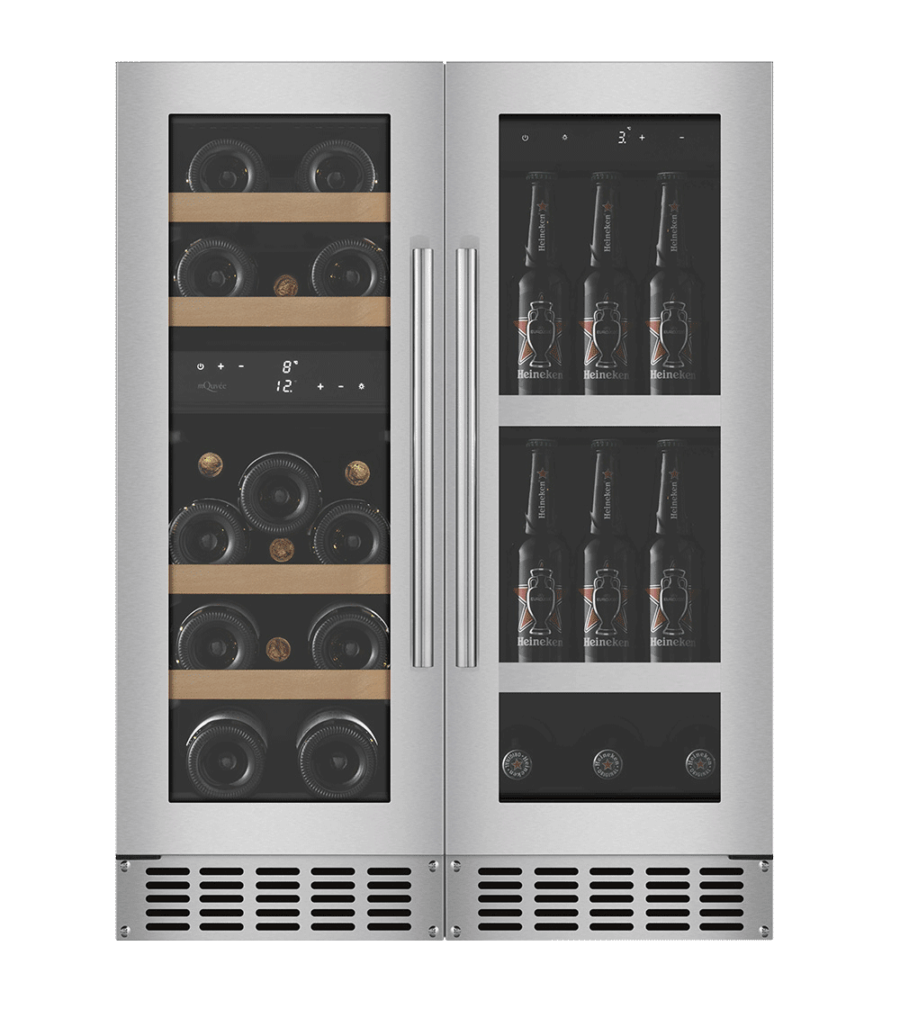 Vinkølskab og ølkøleskab indbygget, kombinationspakke 90 Stainless, rustfri, kompressorkøling, 700 mm dørhøjde