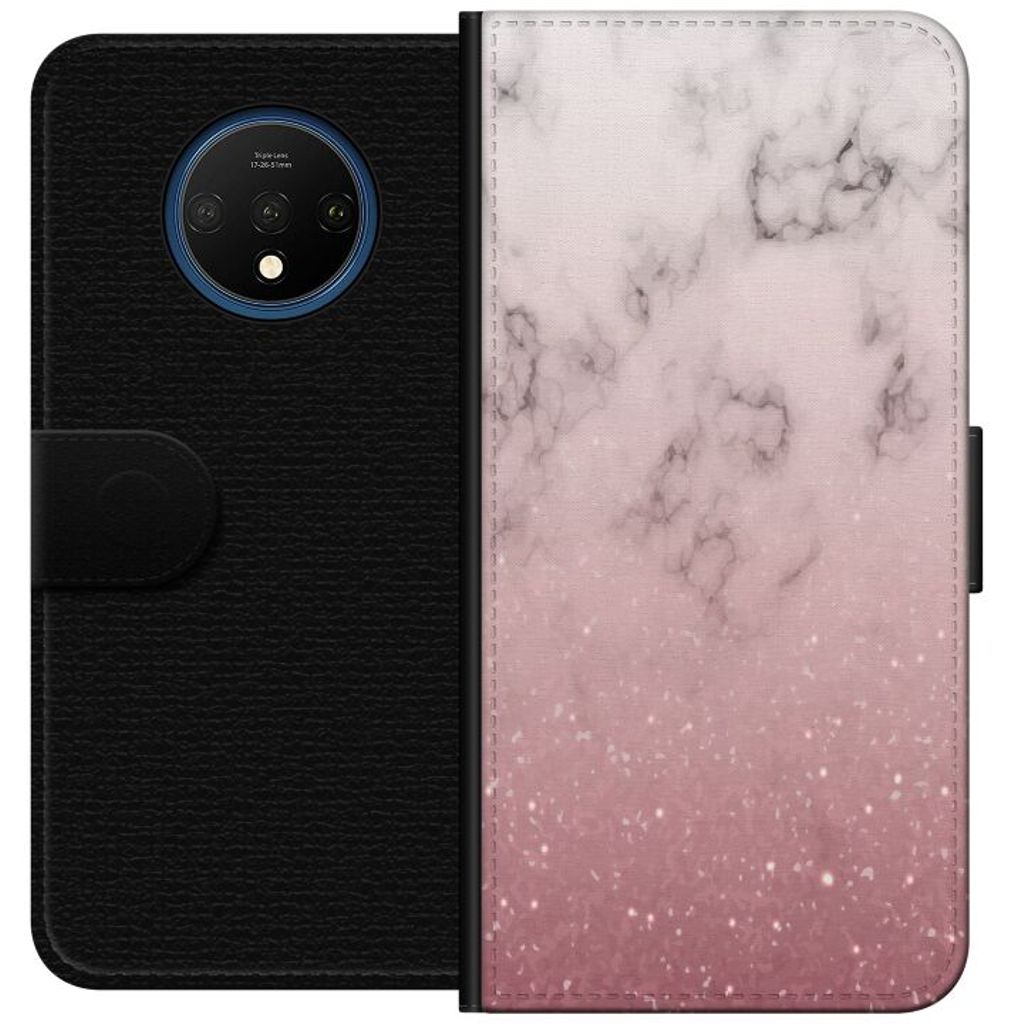 OnePlus 7T Sort Tegnebogsetui Glitter och marmor