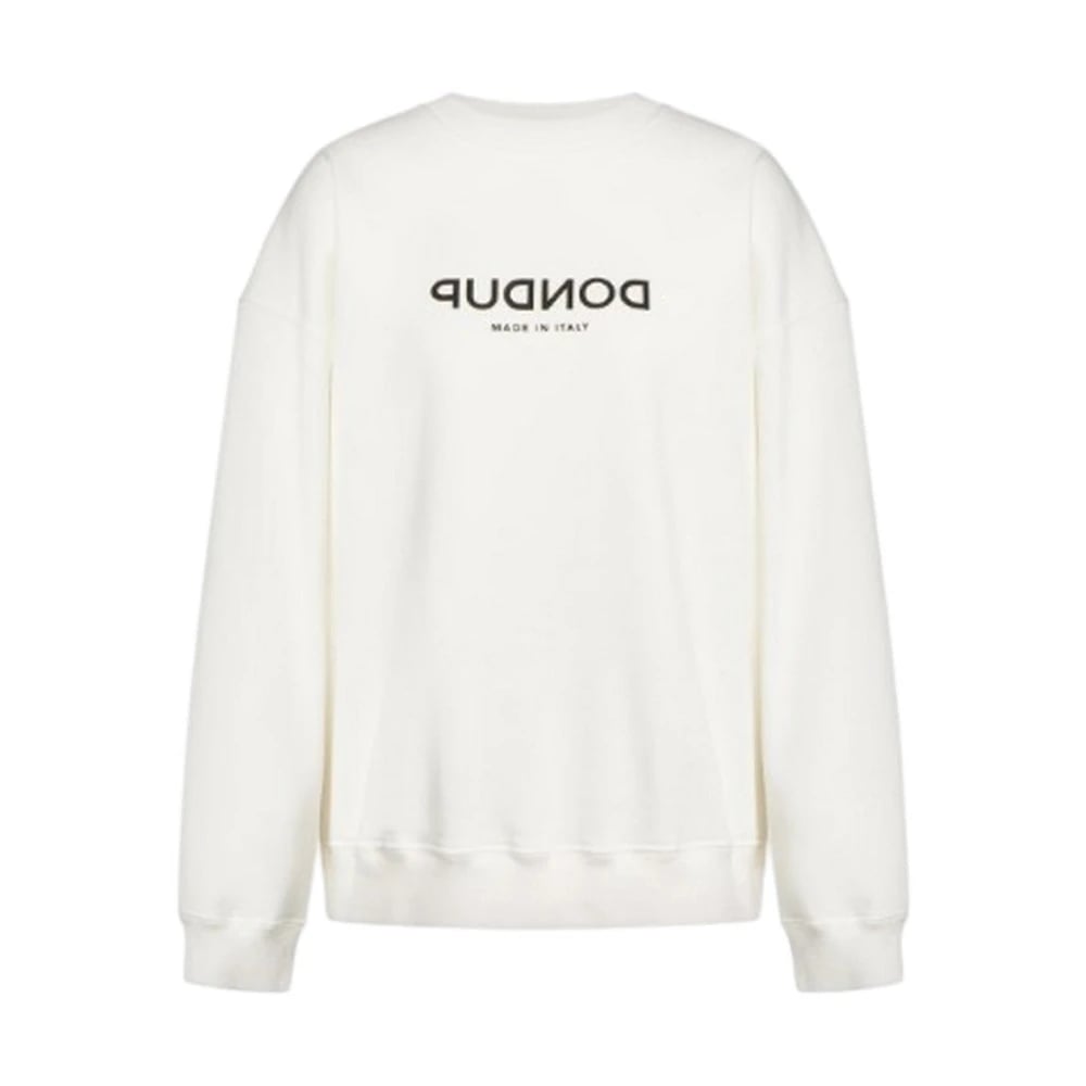 Dondup, Sweatshirts , Dame, Hvid, XS, Bomuld, Oversized Crew-neck Sweatshirt i Diagonal Fleece
