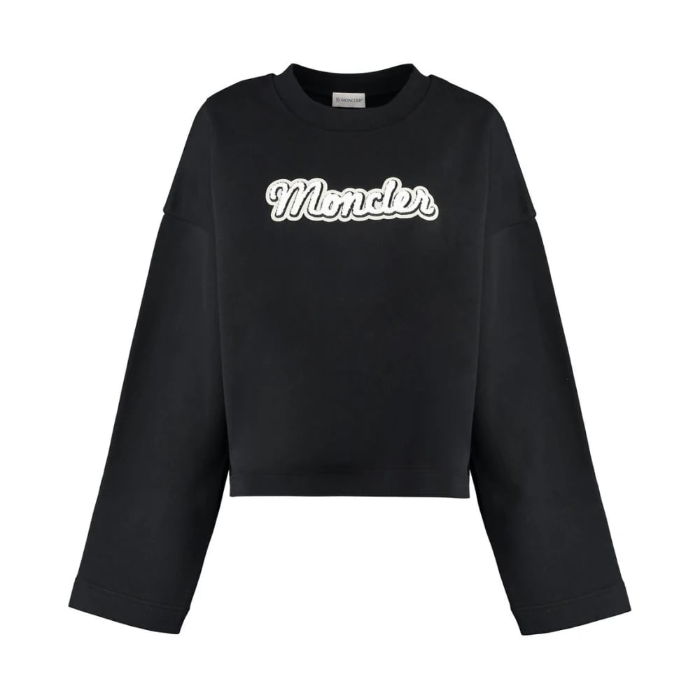 Moncler, Sweatshirts , Dame, Sort, S, Bomuld, Oversized Crewneck Sweatshirt