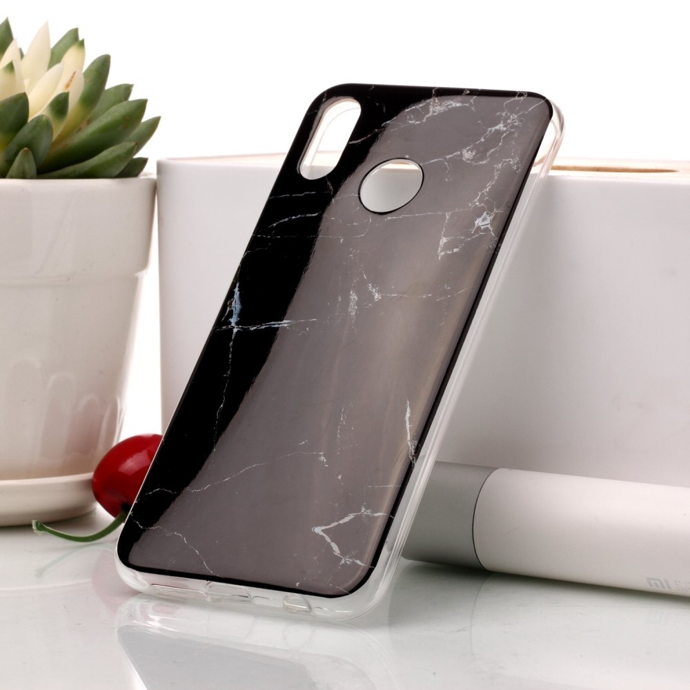 Huawei P20 Lite - MARBLE design gummi cover - Sort