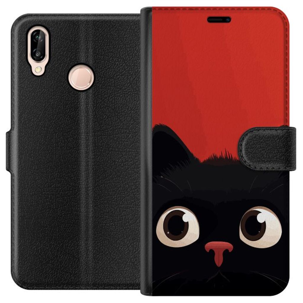 Huawei P20 lite Sort Tegnebogsetui Busig Katt