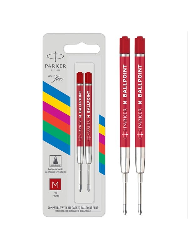 Parker Ballpoint Pen Refill | Medium spids | Rødt QUINKflow-blæk | 2 Stk