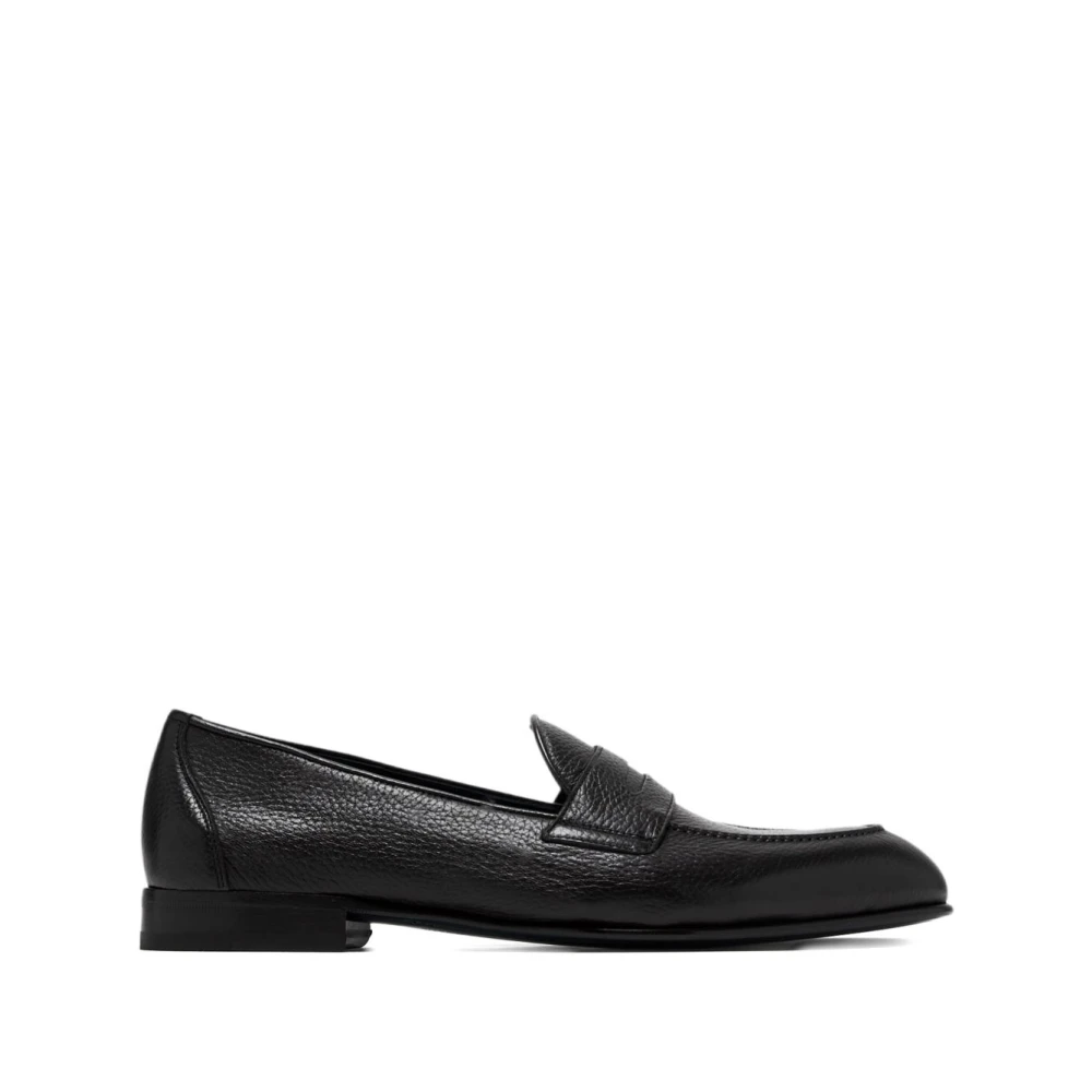 Santoni, Sko , Herre, Sort, 43 EU, Læder, Polerede Penny Loafers i Læder