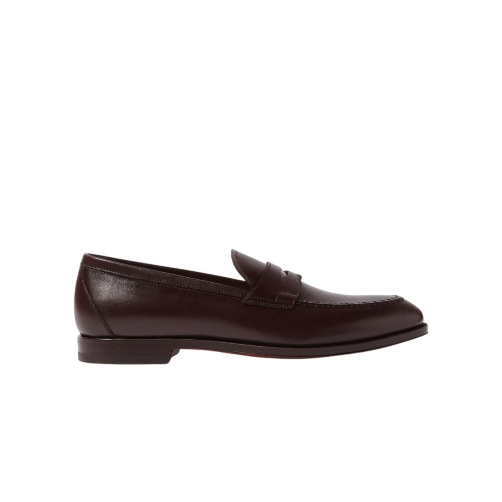 Santoni, Sko , Herre, Brun, 41 EU, Læder, Poleret Brun Læder Penny Loafers