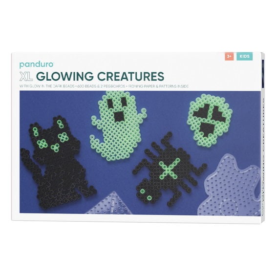 Rørperler XL kit Glowing Creatures – 600 sorte og selvlysende XL-perler + 2 perleplader