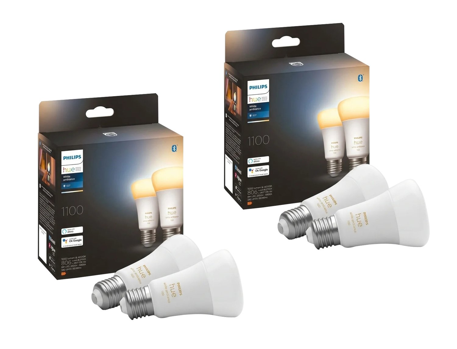 Philips Hue - E27 Color A60 Bulbs 4-Pack (2x2) – 1100lm White & Color Ambiance - Bundle