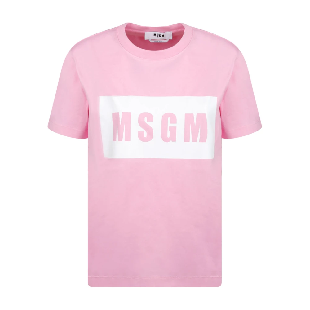 MSGM, Toppe , Dame, Lyserød, S, Bomuld, Pink Logo Print T-Shirt