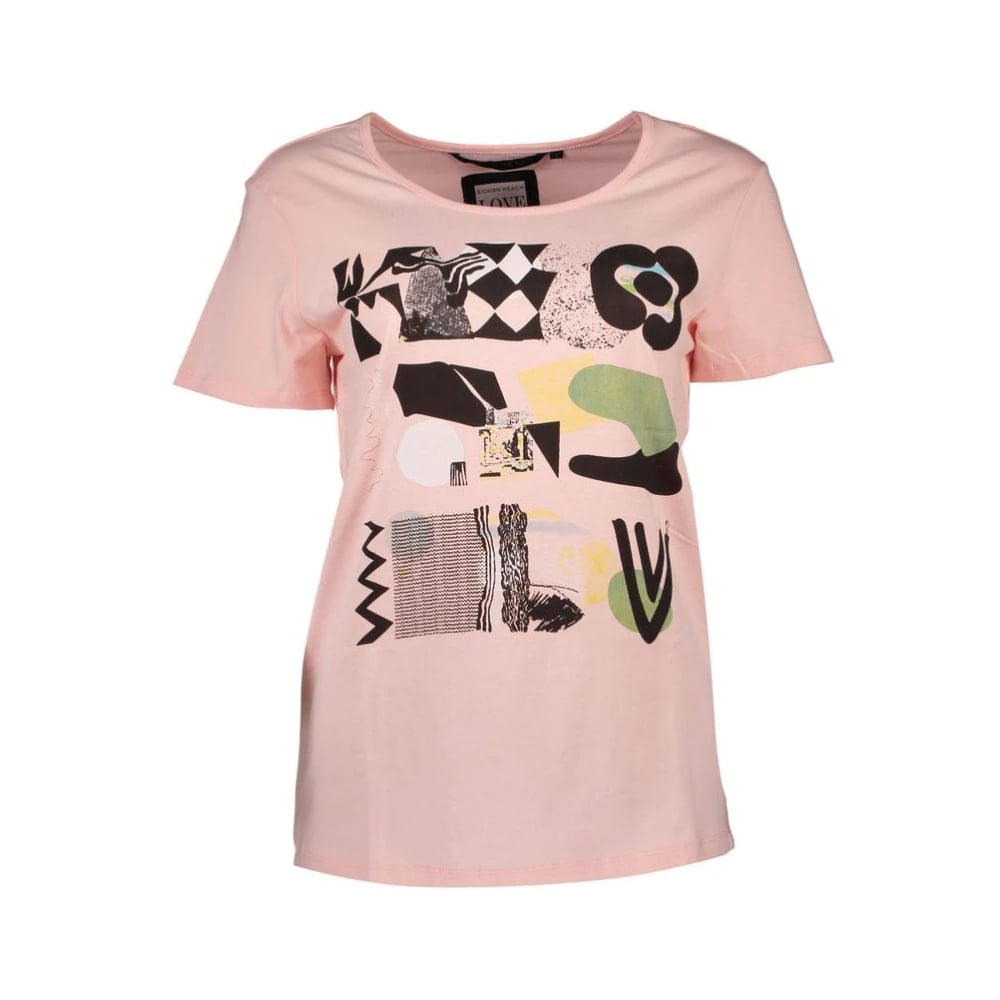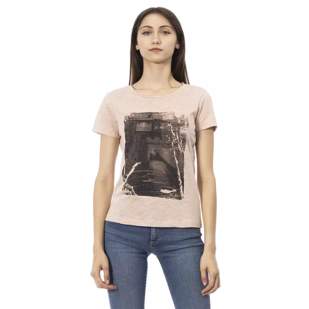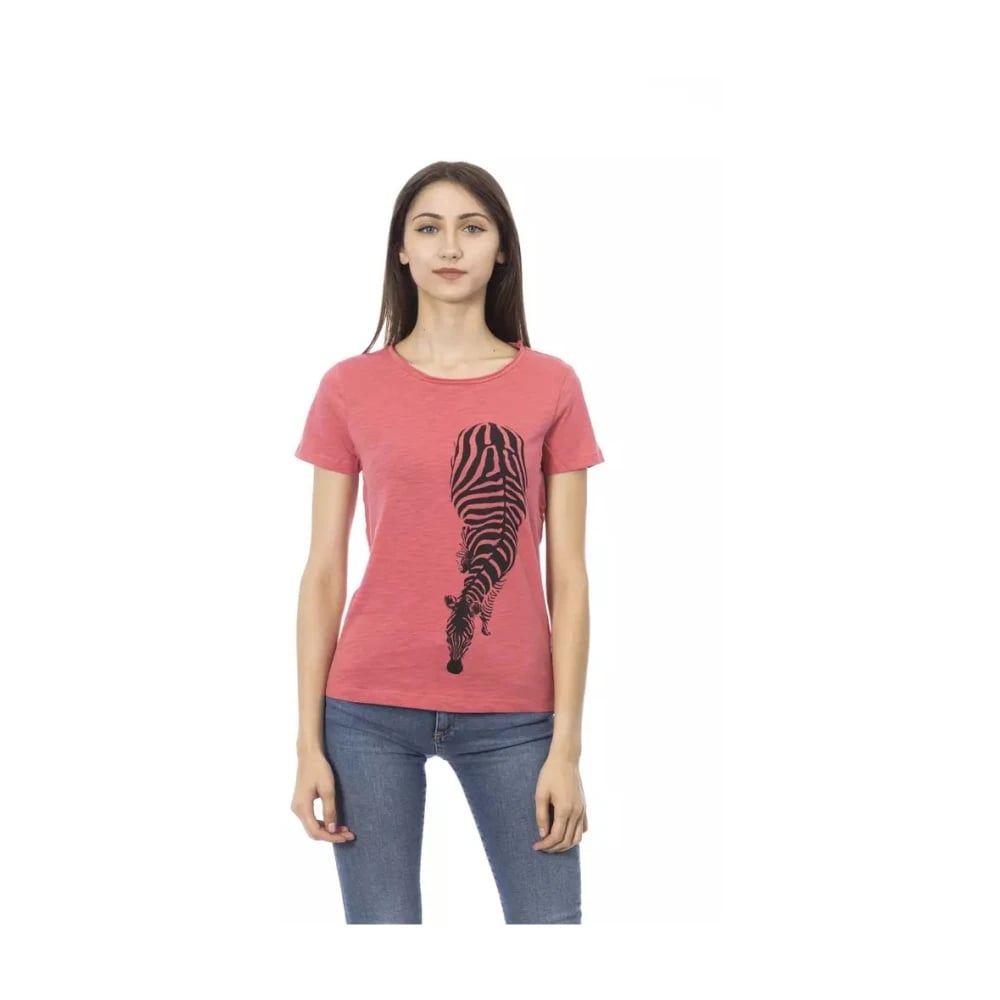Trussardi, Toppe , Dame, Lyserød, M, Bomuld, Pink Bomuld Kortærmet T-shirt med Frontprint