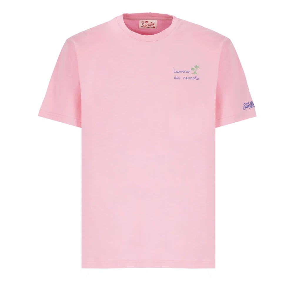 Saint Barth, Toppe , Herre, Lyserød, M, Bomuld, Pink Bomuld T-shirt med Broderi