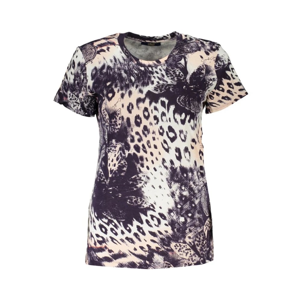 Cavalli Class, Toppe , Dame, Flerfarvet, XS, Uld, Pink Mønster T-shirt med Logo Print