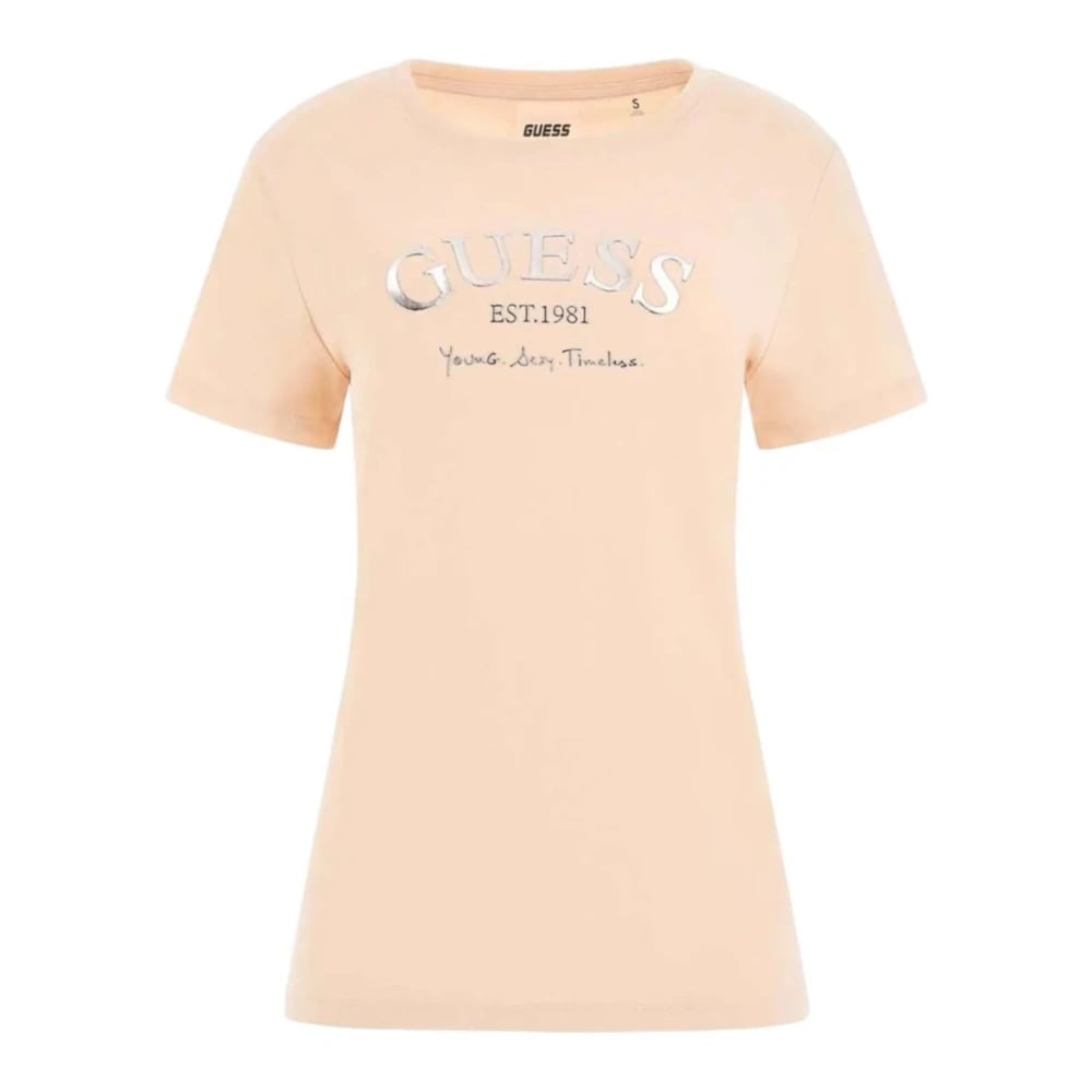 Guess, Toppe , Dame, Lyserød, S, Bomuld, Pink Kortærmet T-shirt til Kvinder