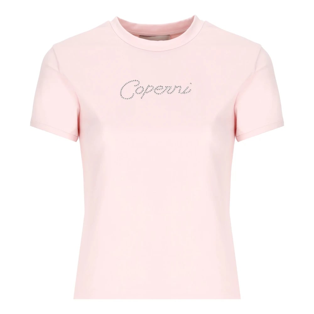 Coperni, Toppe , Dame, Lyserød, L, Uld, Pink Strass Logo T-shirt til Kvinder
