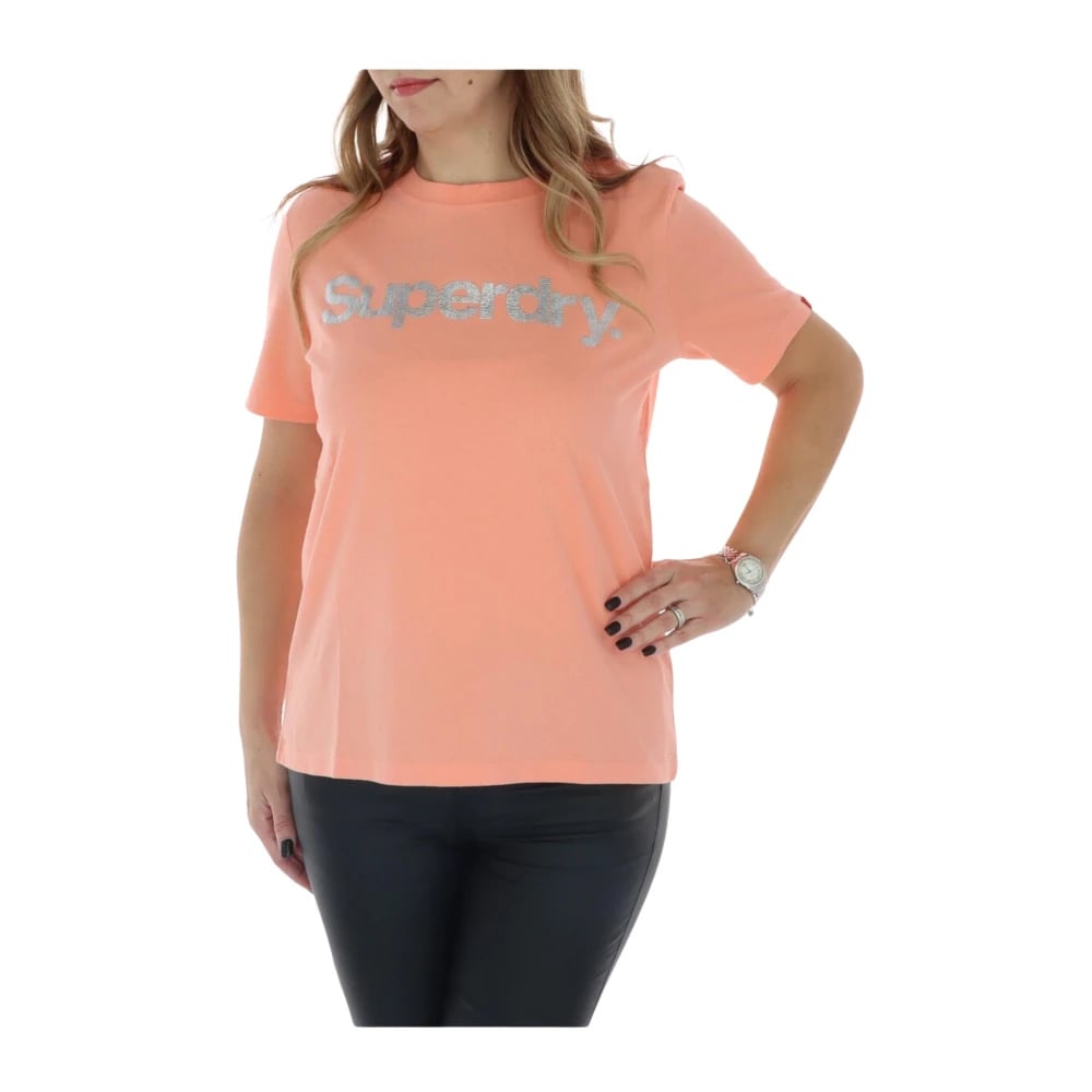 Superdry, Toppe , Dame, Lyserød, XS, Bomuld, Pink Print Bomuld T-shirt Kvinder