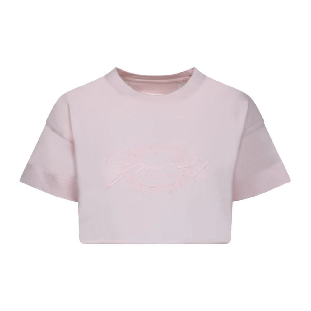 Givenchy, Toppe , Dame, Lyserød, M, Bomuld, Pink Broderet Crop T-Shirt
