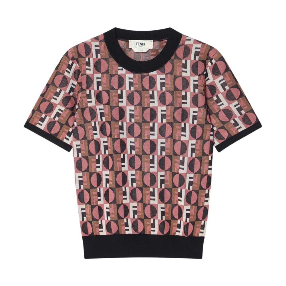 Fendi, Toppe , Dame, Lyserød, XS, Uld, Pink Kortærmet T-shirt Polo