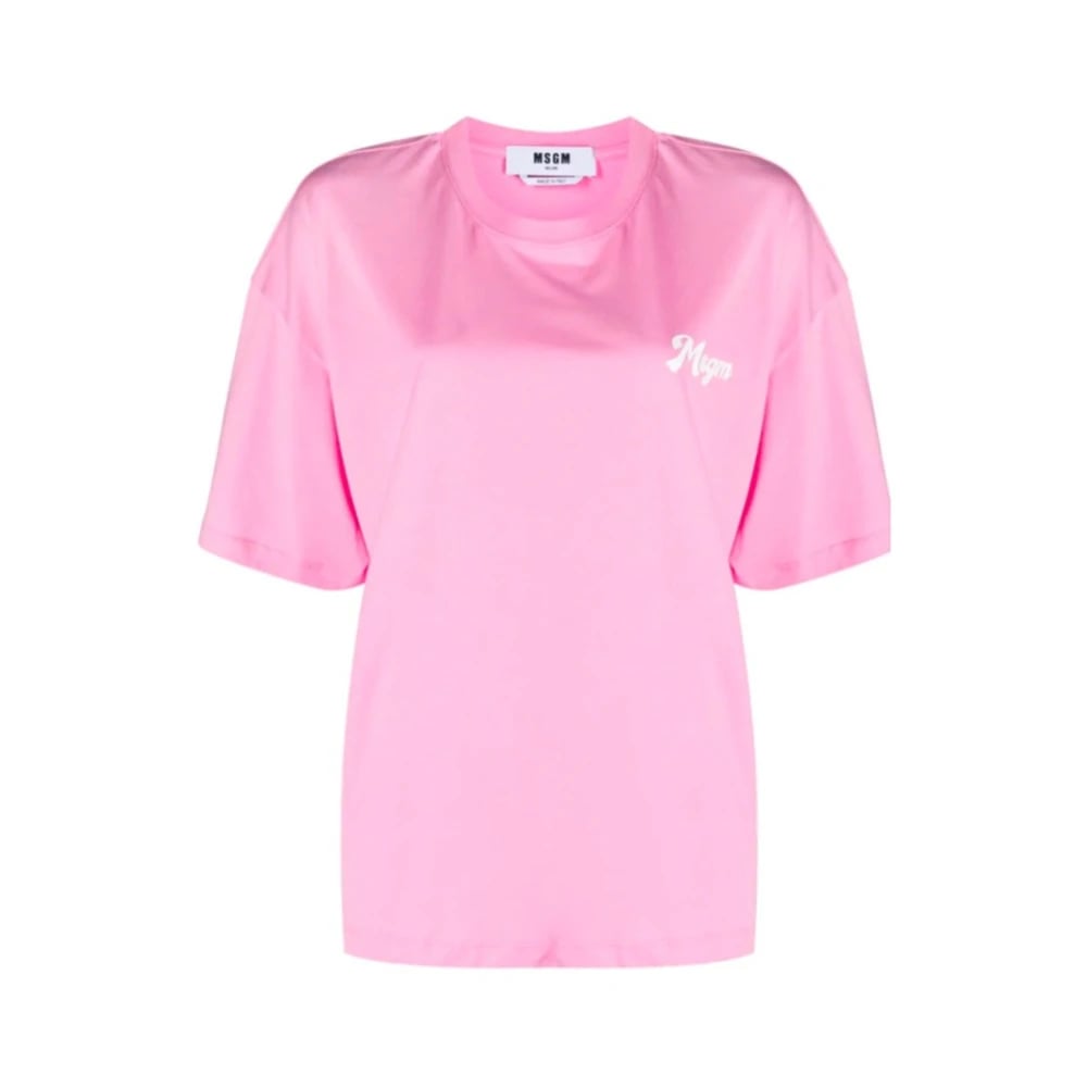 MSGM, Toppe , Dame, Lyserød, M, Bomuld, Pink Logo Print T-Shirt