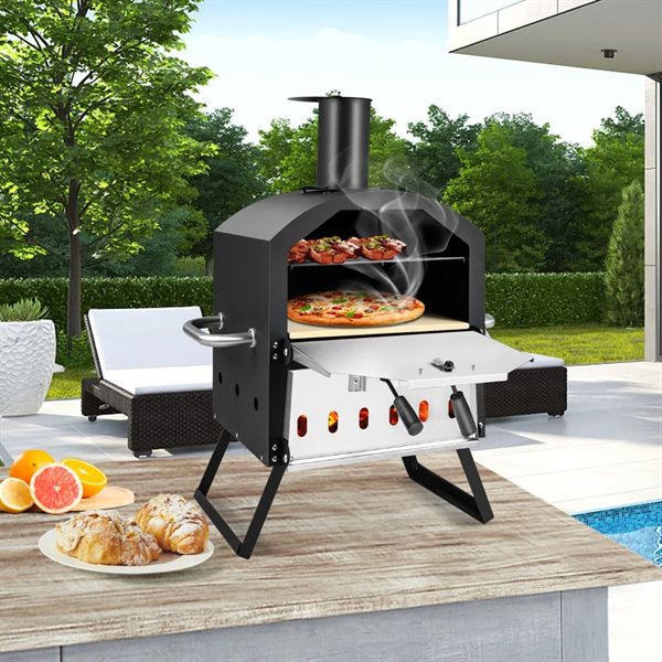 Pizzaovn med roterende pizzasten – transportabel ovn / udendørs ovn med termometer