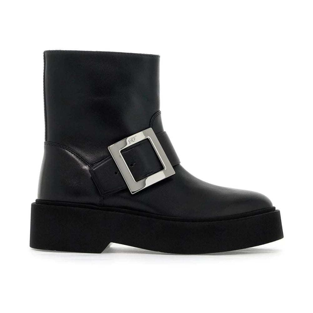 Roger Vivier, Sko , Dame, Sort, 38 1/2 EU, Læder, Viv' Rangers Platform Buckle Støvler