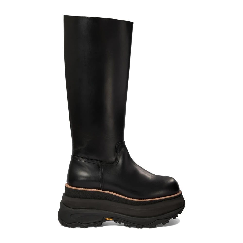 Sacai, Sko , Dame, Sort, 40 EU, Læder, Platform Knæhøje Støvler
