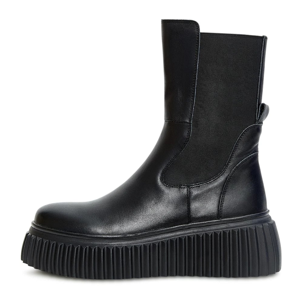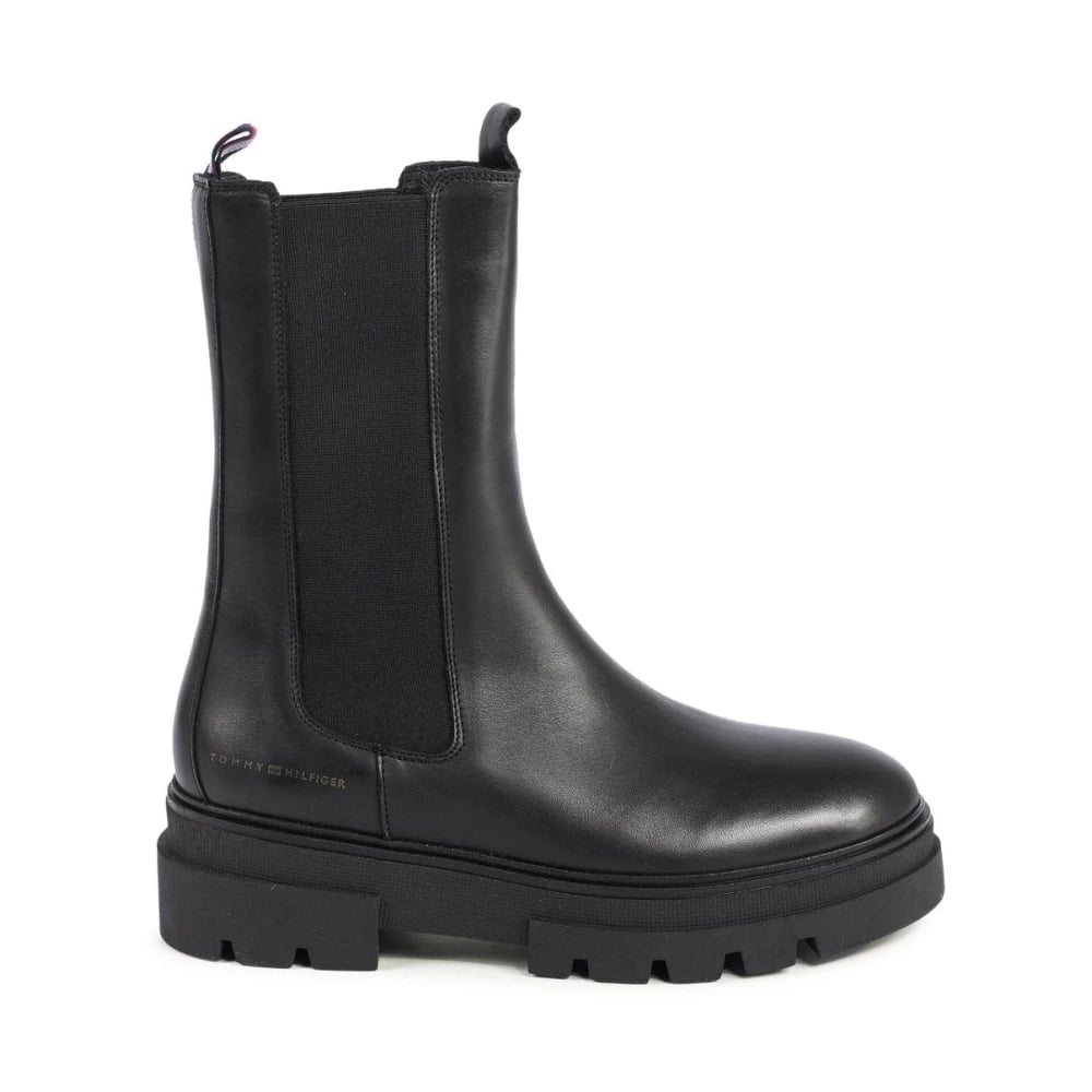 Tommy Hilfiger, Sko , Dame, Sort, 36 EU, Læder, Sort Læder Chelsea Støvler Platform Sål