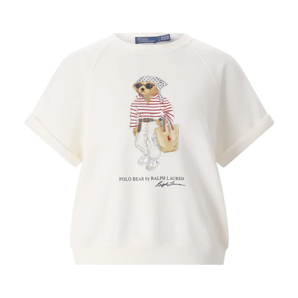 Polo Ralph Lauren, Toppe , Dame, Hvid, L, Bomuld, Loopback Fleece Polo Bear Sweatshirt