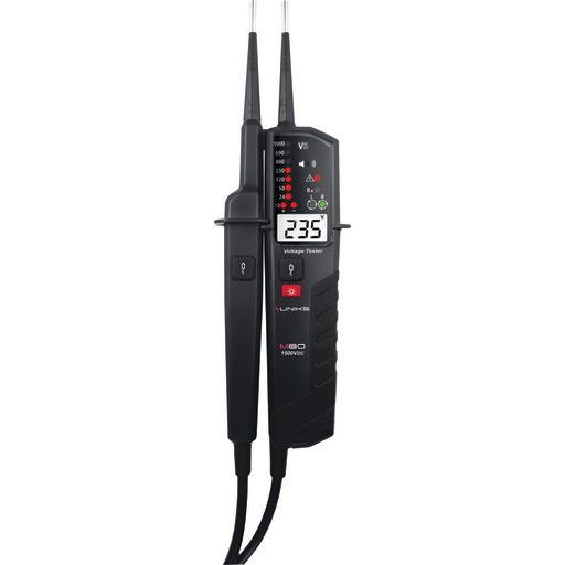 Spænding, gennemg, RCD, polsøger, fasefølge, lygte, Uniks M80D