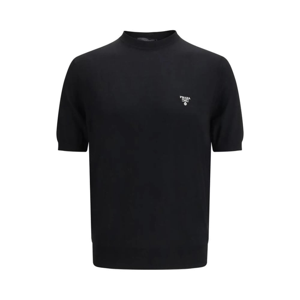 Prada, Strik , Herre, Sort, XL, Uld, Fleece Wool T-shirt med Premium Finish