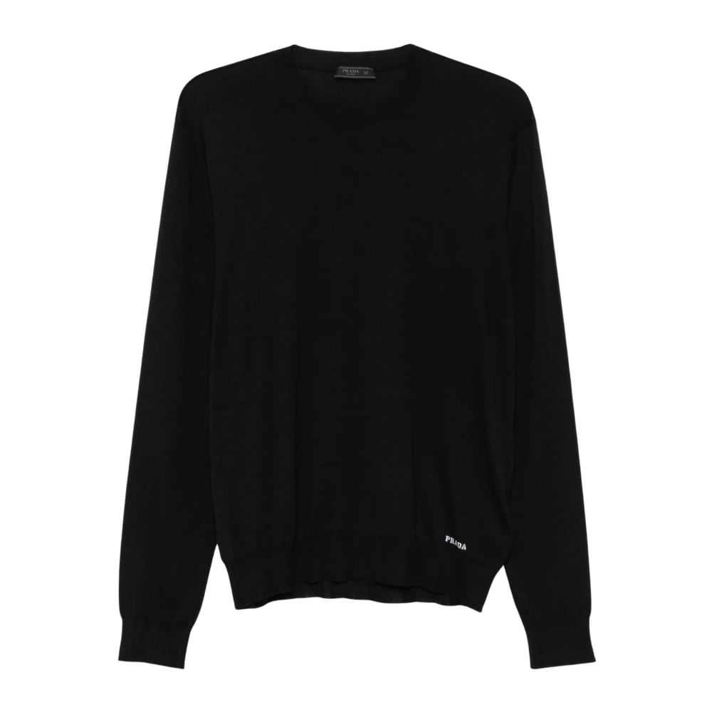 Prada, Strik , Herre, Sort, L, Fine Knit Crew Neck Sweater