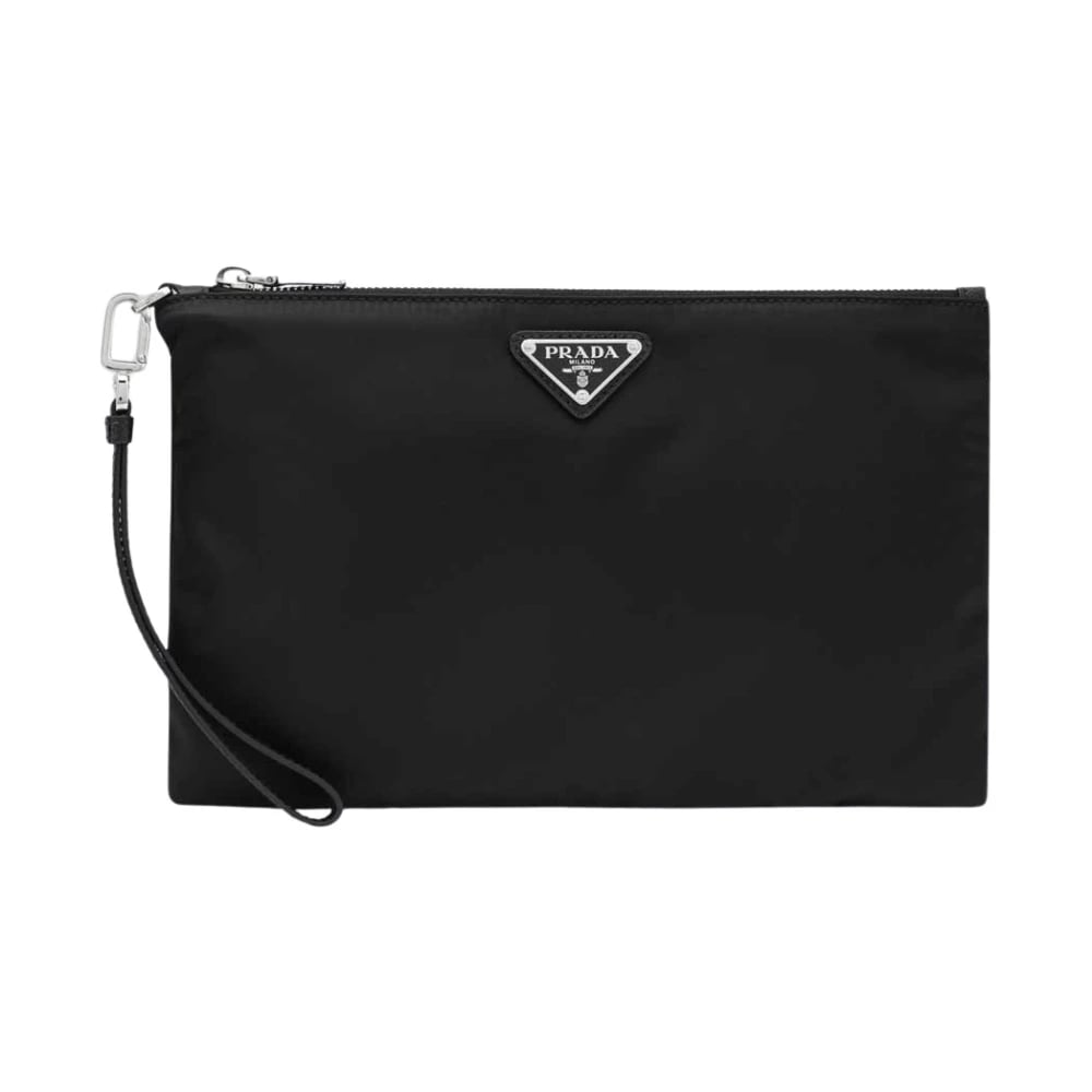 Prada, Tasker, Herre, Sort, ONE SIZE, Læder, Re-Nylon og Saffiano læder pouch