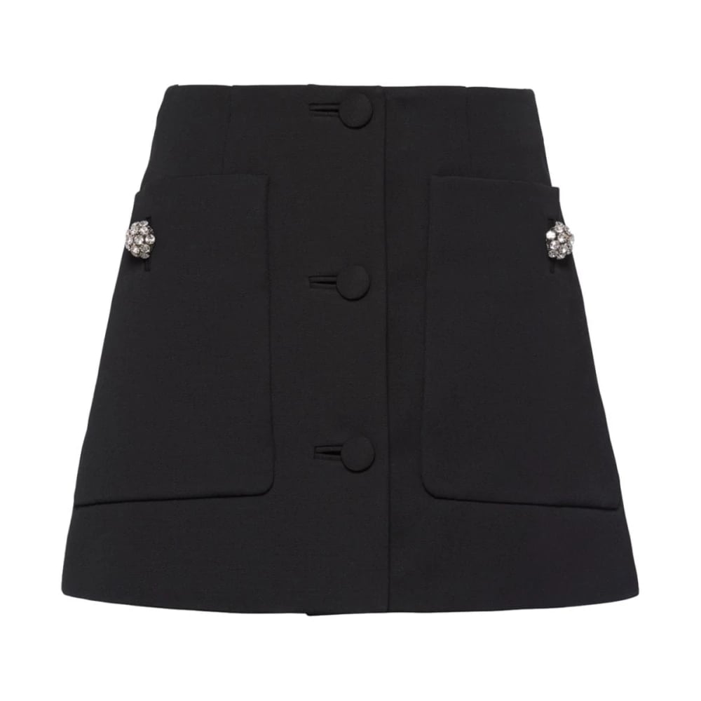 Prada, Nederdele , Dame, Sort, XS, Uld, Uld Gabardine Skørt med Juvelknapper