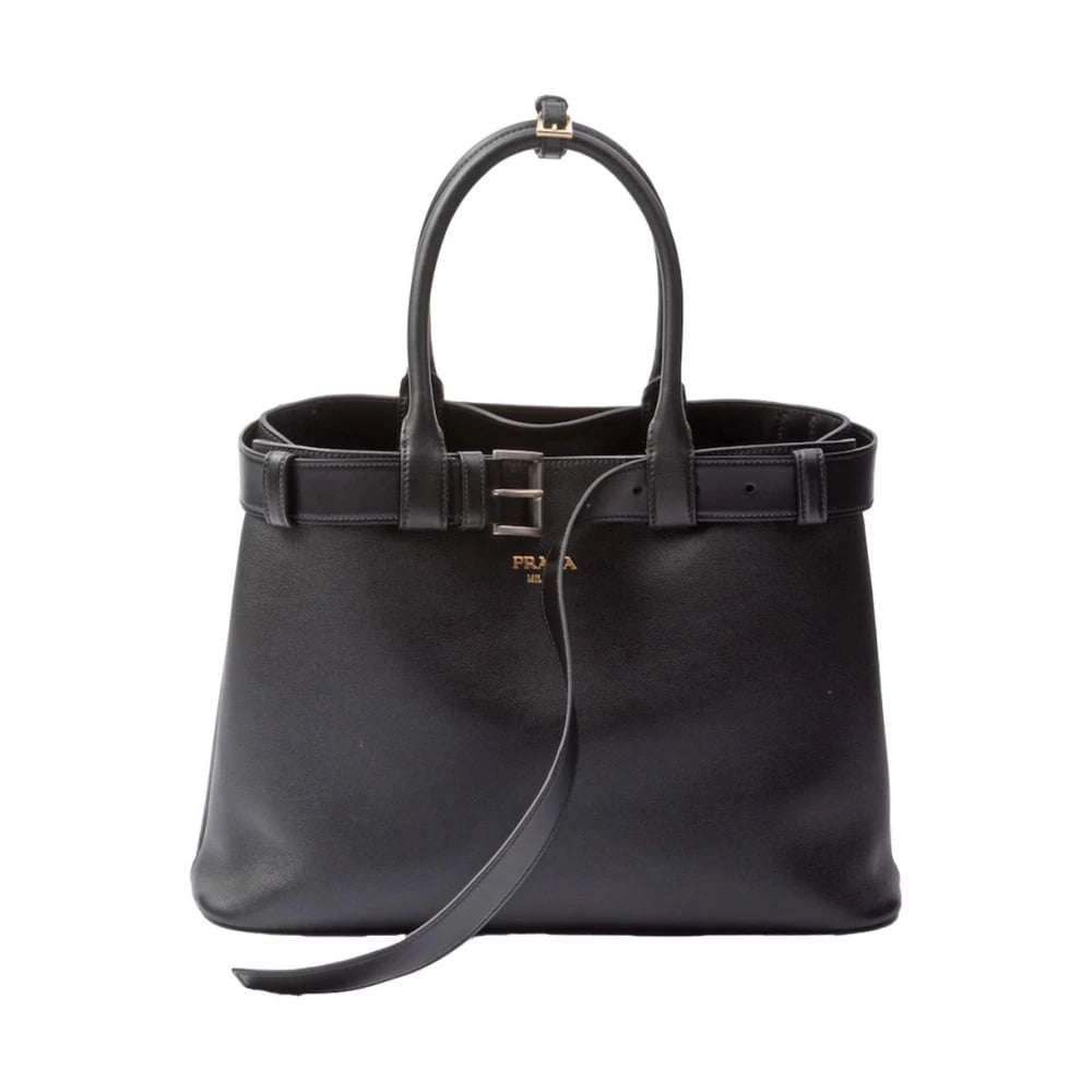 Prada, Tasker , Dame, Sort, ONE SIZE, Læder, Buckle Stor Læder Håndtaske