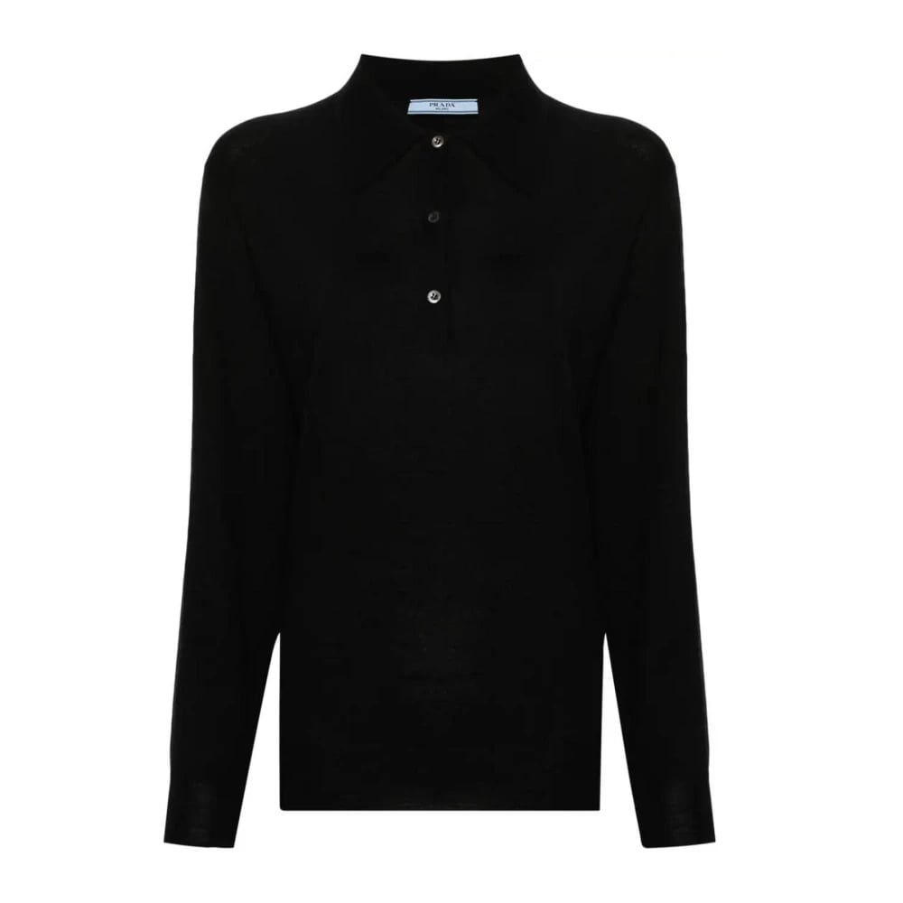Prada, Toppe , Dame, Sort, S, Cashmere, Polo Shirt med trekantlogo