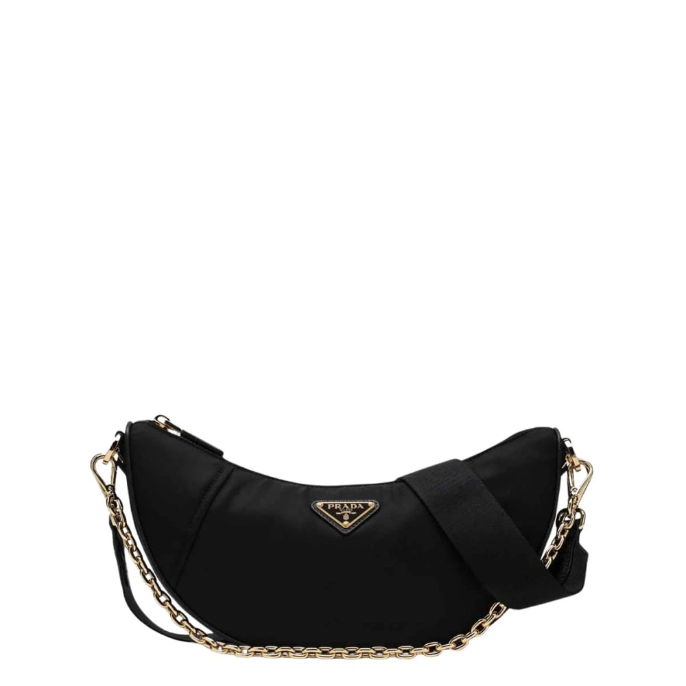 Prada, Tasker , Dame, Sort, ONE SIZE, Uld, Demi-lune Re-Nylon Skuldertaske