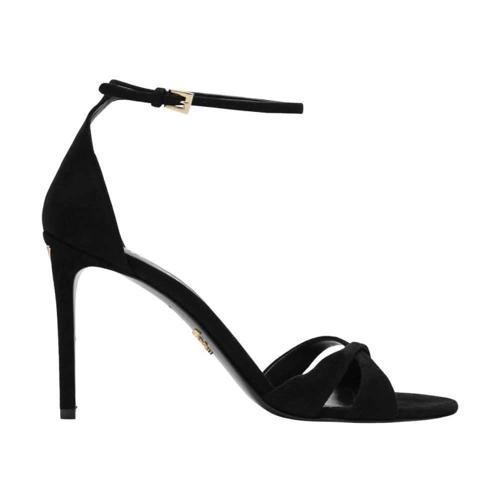Prada, Sko , Dame, Sort, 36 1/2 EU, Læder, Elegant Mid Heel Open Toe Sandaler