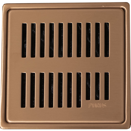 Purus Square Rib afløbsrist, rist og ramme, 161x161 mm, kobber