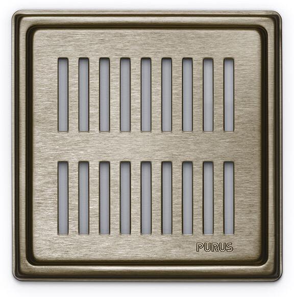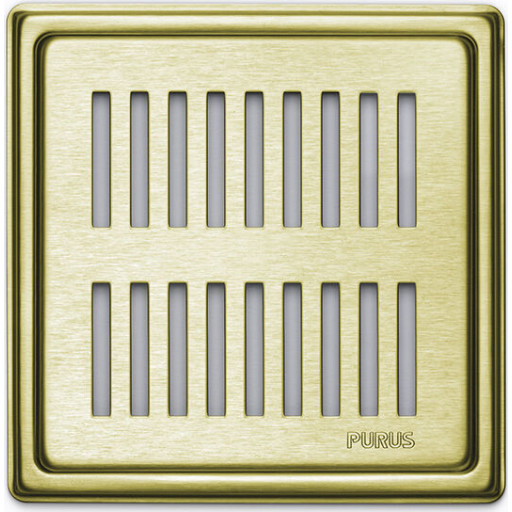 Purus Square Rib afløbsrist, rist og ramme, 161x161 mm, messing