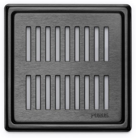 Purus Square Rib afløbsrist, rist og ramme, 161x161 mm, mat sort