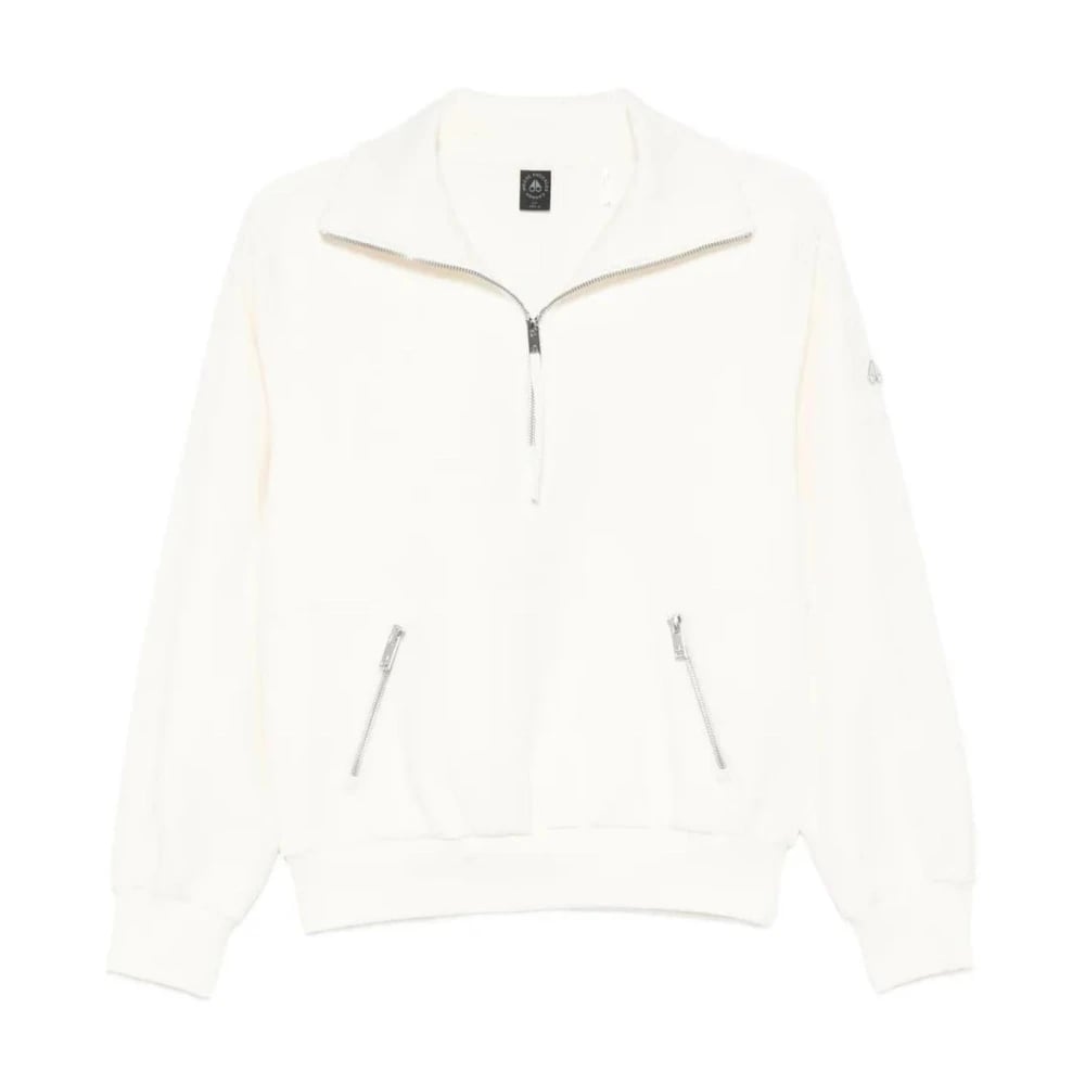 Moose Knuckles, Sweatshirts , Dame, Hvid, M, Bomuld, Mix Media Quarter Zip Sweater