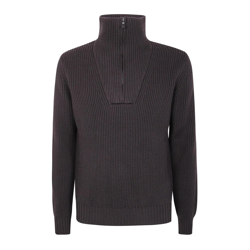Filippo De Laurentiis, Strik , Herre, Brun, 2XL, Quarter Zip Ribbed Sweater