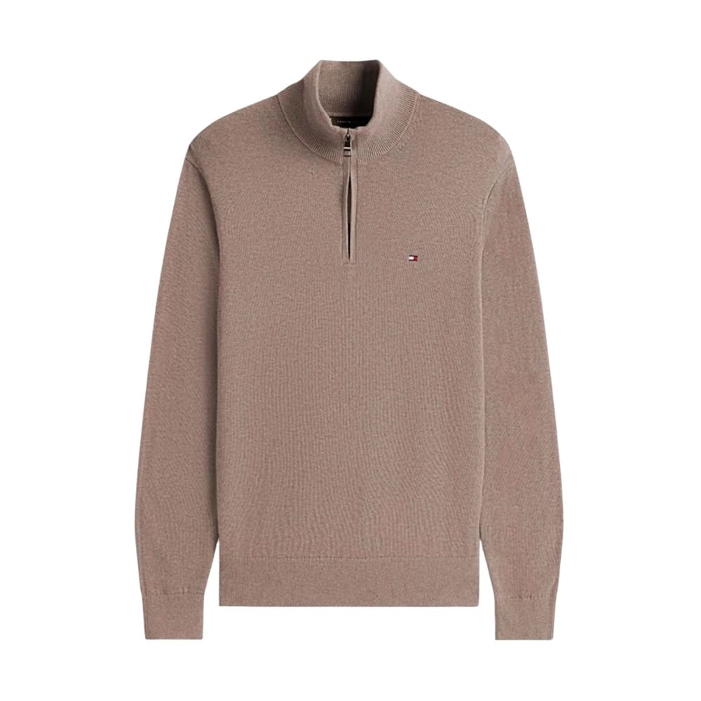 Tommy Hilfiger, Strik , Herre, Beige, 2XL, Cashmere, Cotton Cashmere Quarter-Zip Sweater