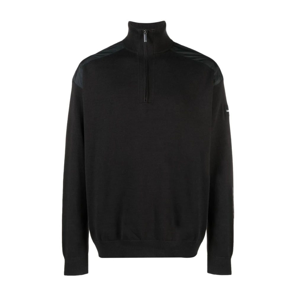 Calvin Klein, Strik , Herre, Sort, S, Bomuld, Quarter Zip Sweater Mix Media